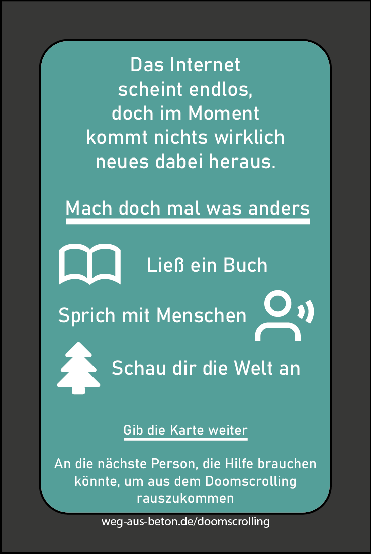 Falls du selbst das Gefühl hast, zu viel Zeit online zu verbringen, oder anderen helfen möchtest, ihre Mediennutzung zu reflektieren, findest du hier weitere Infos: